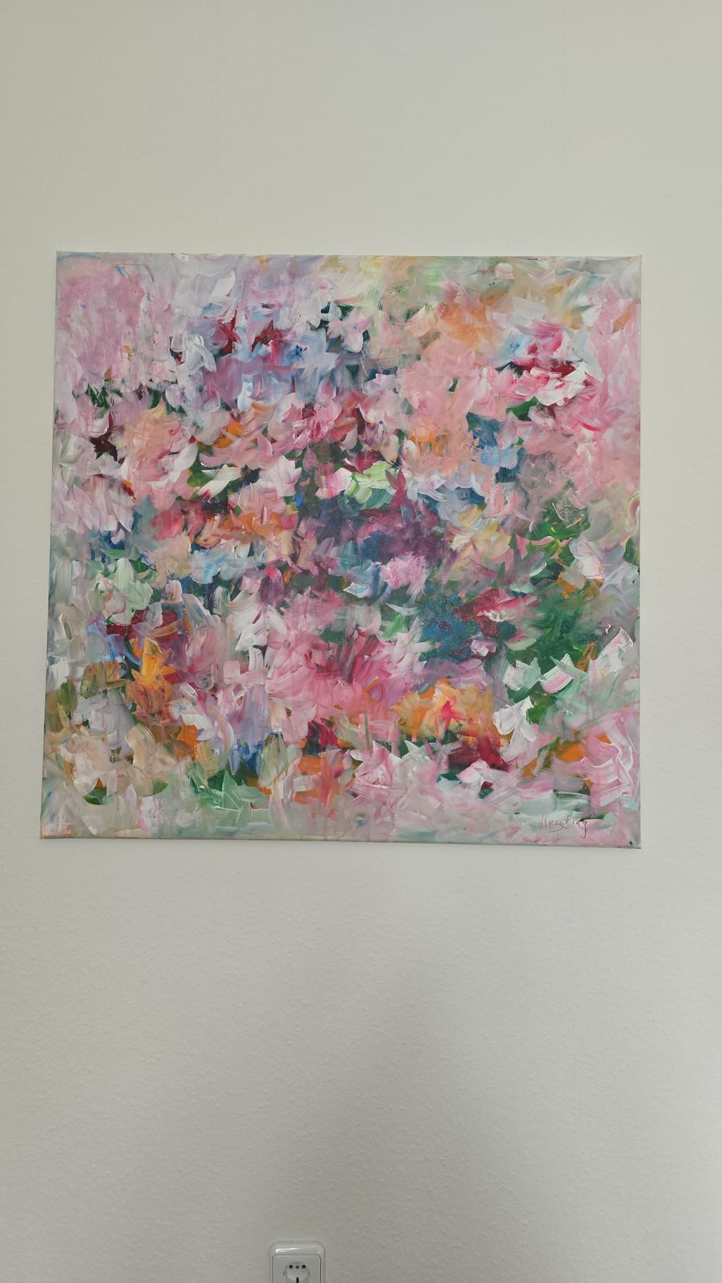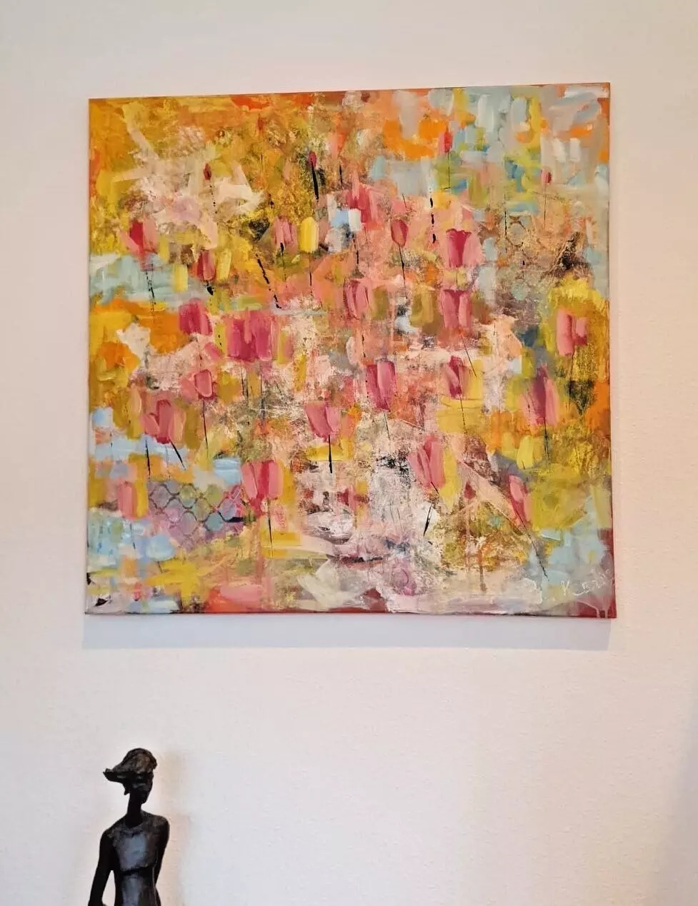 Sommer2025 – Modernes Abstract Blumenbild 90x90 – Farbiges Acrylbild auf Leinwand – Preis mit Schattenfugenrahmen 420,00 €
