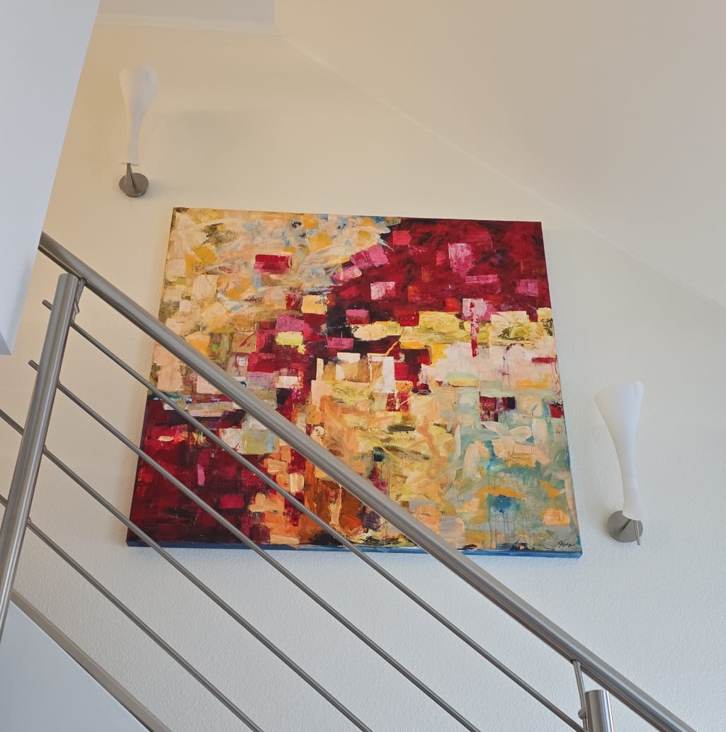 Farben verschmelzen zu einem emotionalen Rhythmus aus Licht und Wärme hat eine Größe von 1,5 m x 1,5 m Preis 700,00 €
