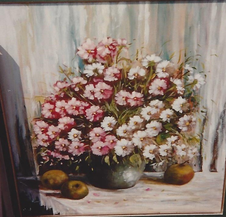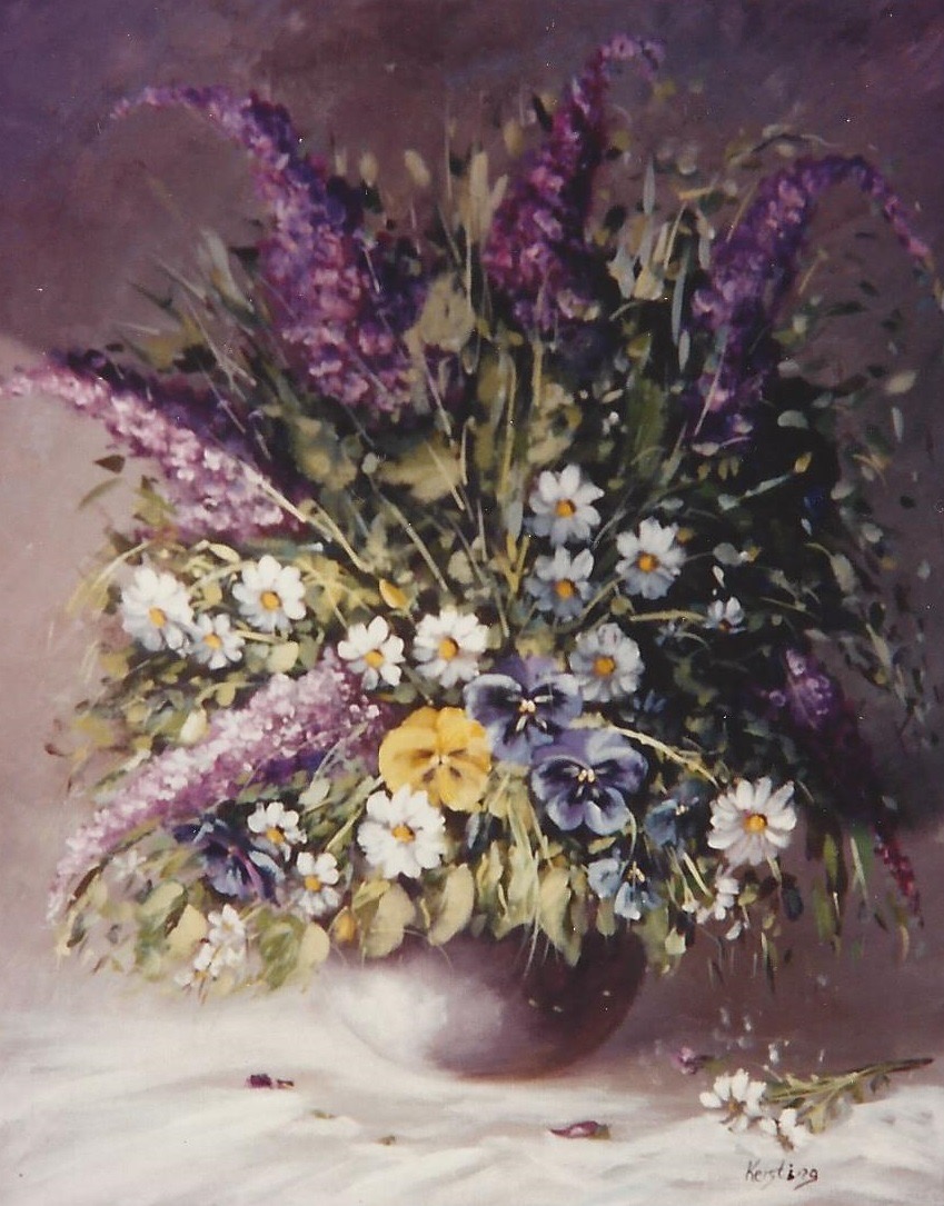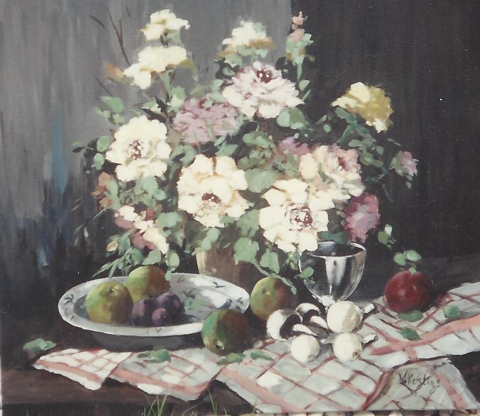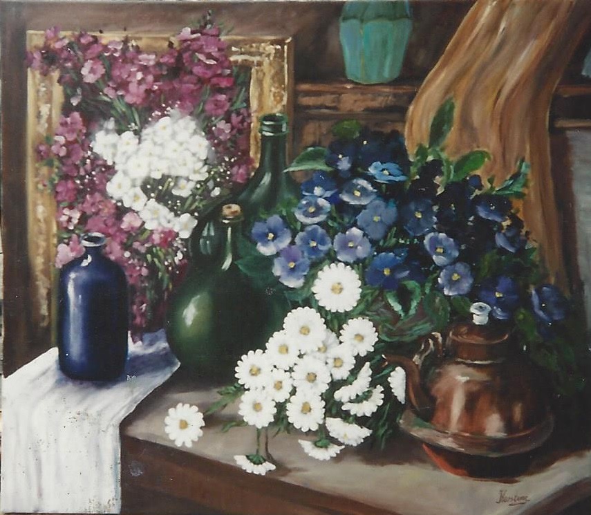 Ein Stillleben, dessen florale Gestaltung von der Blumenmalerei Katharina Schöttlers inspiriert ist und mich bis heute positiv prägt.